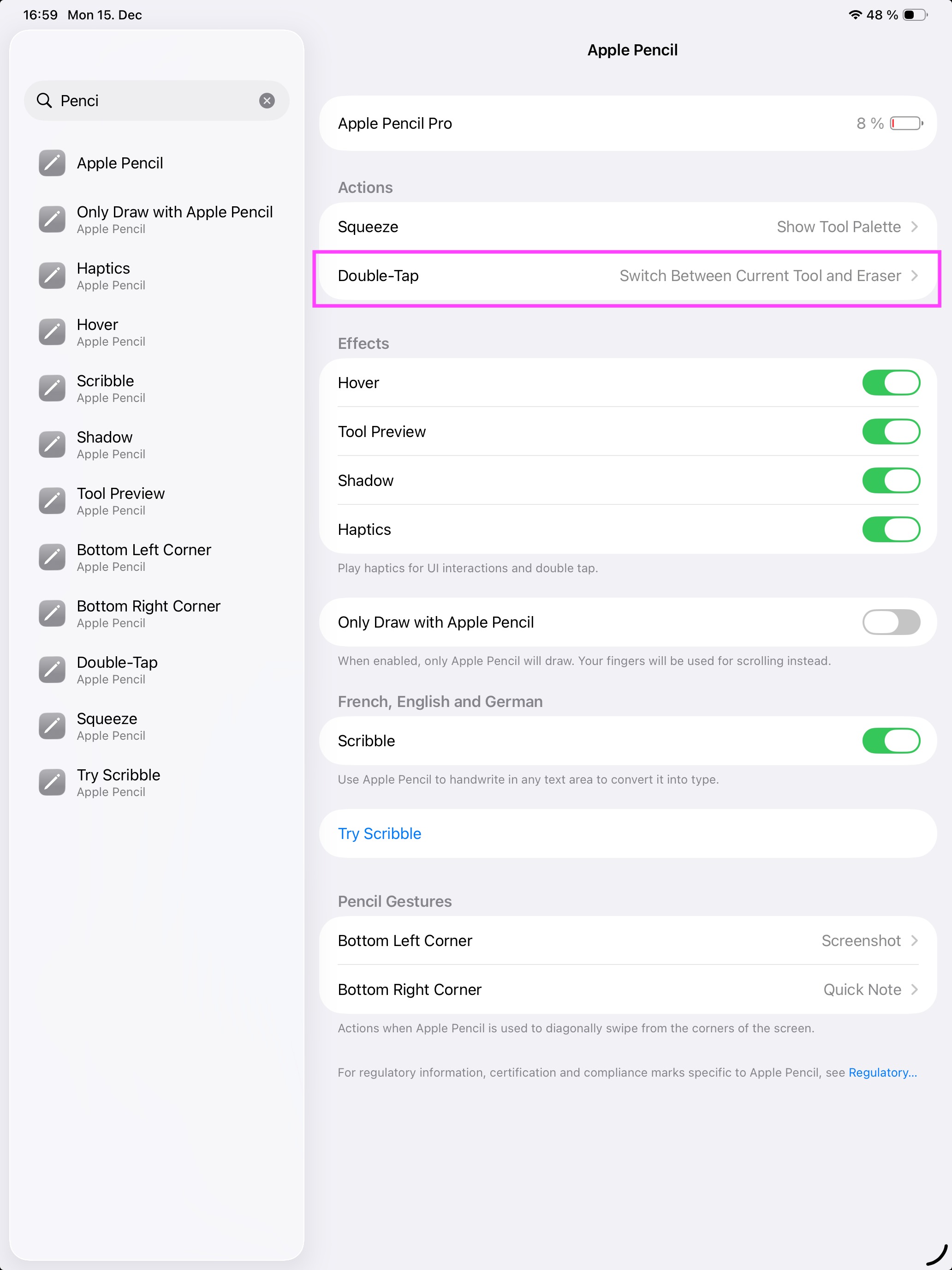 To deactivate double-tap gestures, go to your device’s Settings app, in “Apple Pencil” and “Double-Tap”.